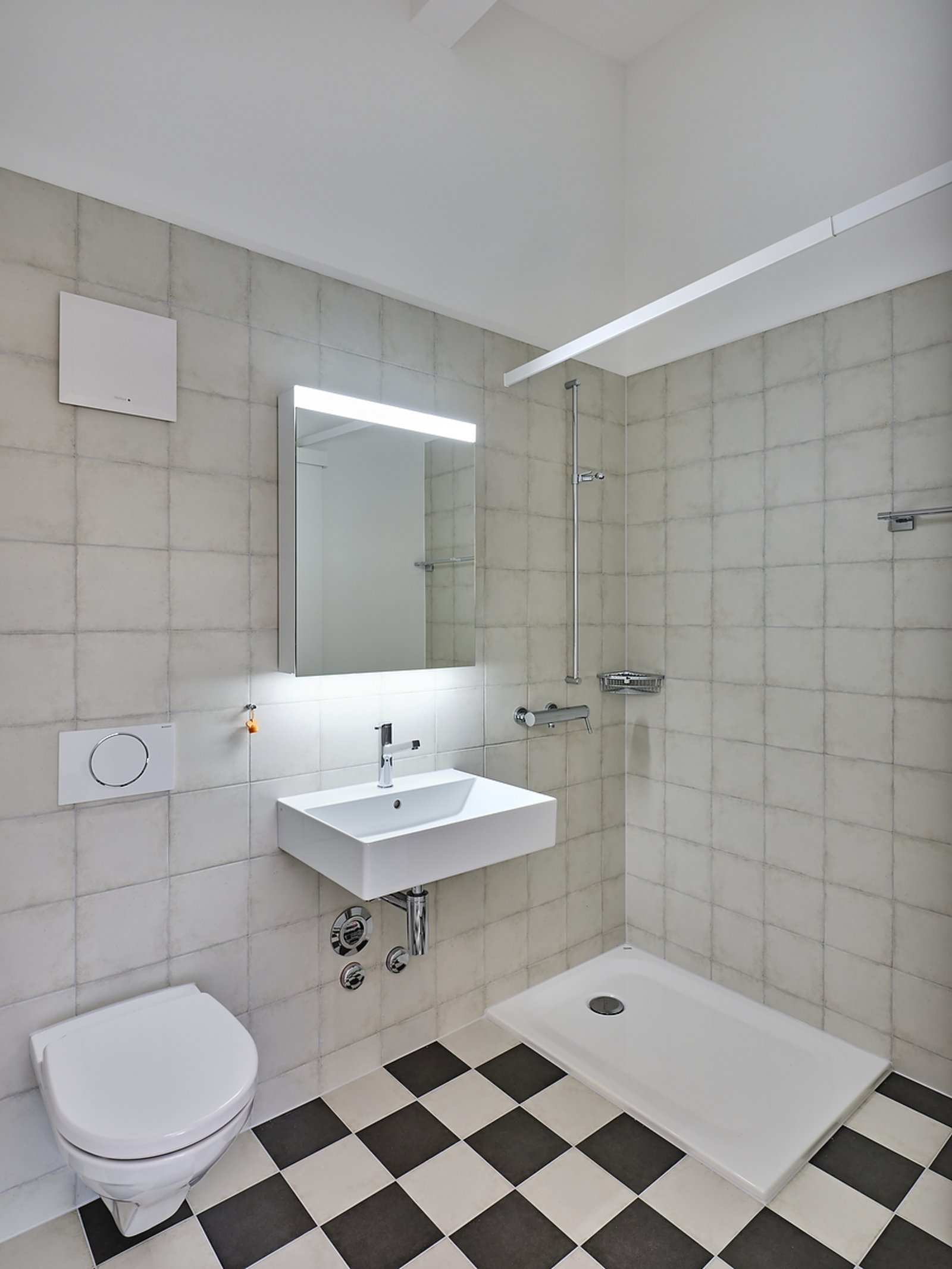 Jedes Appartement verfügt über eine Küche, eine Nasszelle mit Dusche und WC sowie ein Kellerabteil. Ein gemeinsamer Waschraum sowie grosszügige Abstellflächen für Velos stehen allen Mieterinnen und Mietern zur Verfügung.