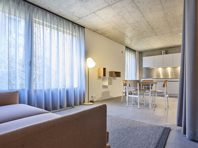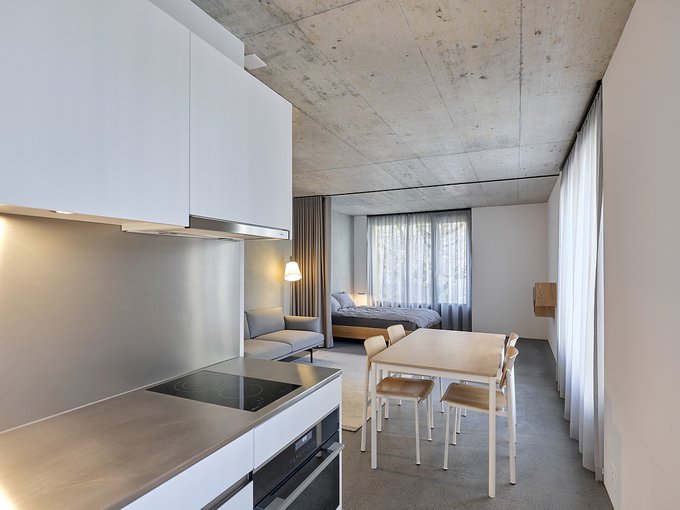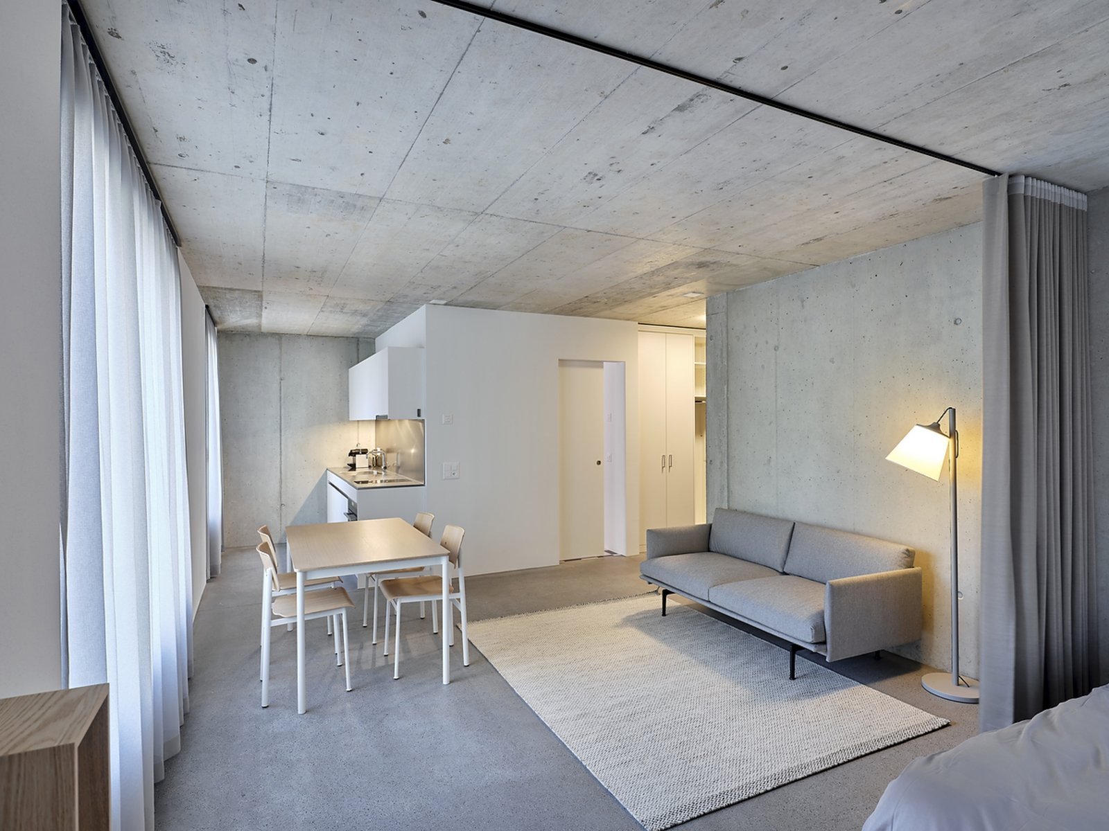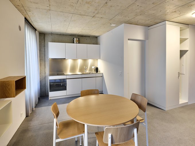 Von den 22 Einheiten vermieten wir insgesamt 4 der praktisch und modern ausgebauten Studios als fertig möblierte Appartements in drei verschiedenen Farbwelten. Für den geradlinigen Stil ist das Möbel- und Einrichtungshaus Teo Jakob verantwortlich, seine hochwertigen Möbel geben den Studios das typisch skandinavische Flair. Ob Kurz- oder Langaufenthalt entscheiden Mieterinnen und Mieter selbst, die Wohnungen können bereits ab einer Mindestdauer von drei Monaten bezogen werden.