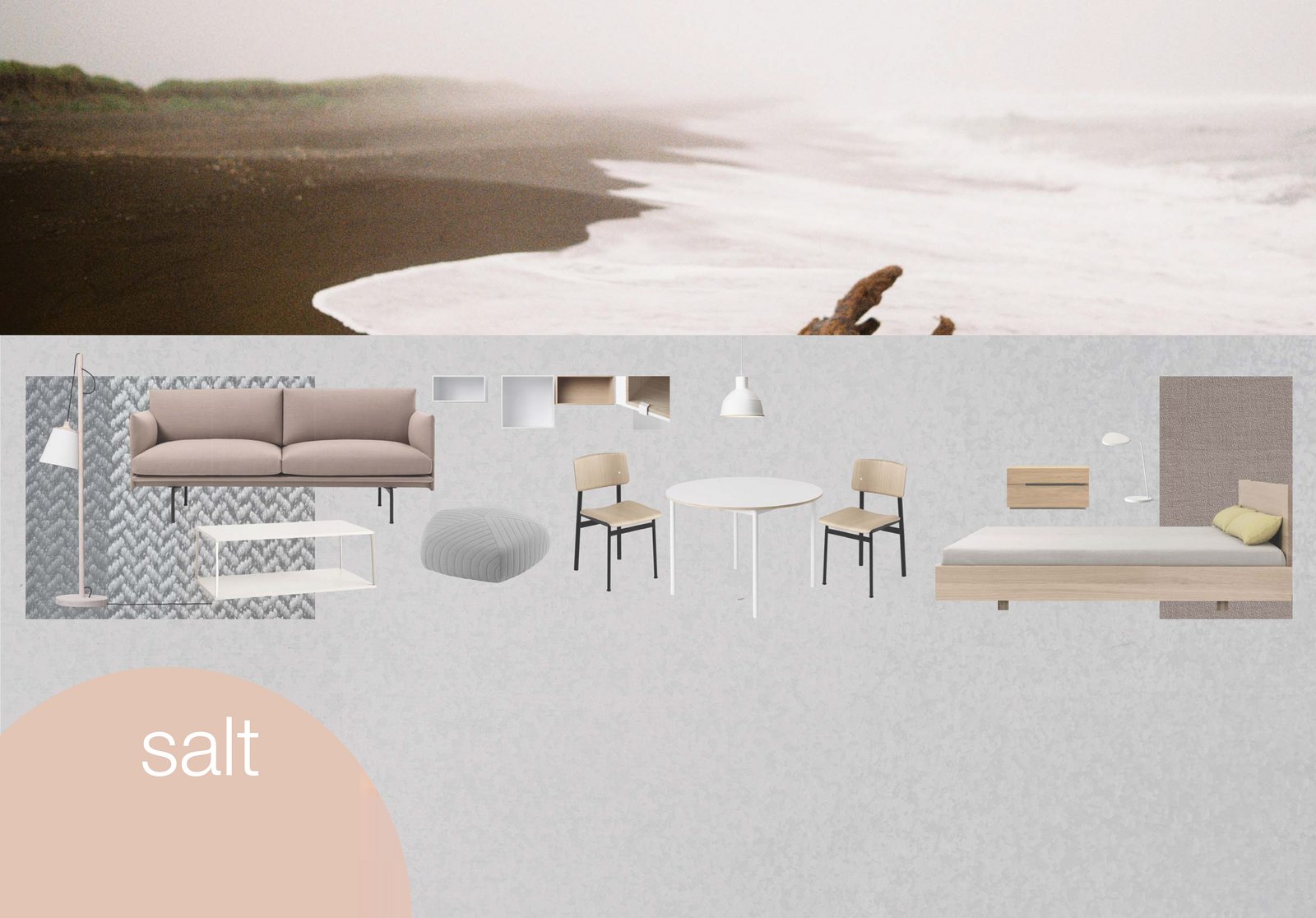 In der Welt von Salt überwiegen sanfte Naturfarben, weiss, sand, rose. Inspiriert von der wunderschönen warmen Farbe des Himalaya Salzes wurde diese Wohnung eingerichtet. Der quadratische Grundriss bietet eine optimale Raumaufteilung. Der Schlafbereich kann mit hochwertigen Textilen diskret abgetrennt werden. Mit natürlichen Materialien wirkt diese Wohnung ausgesprochen skandinavisch. Diese Einrichtungsvariante bietet auf kompakter Fläche grösste Entfaltungsmöglichkeiten.